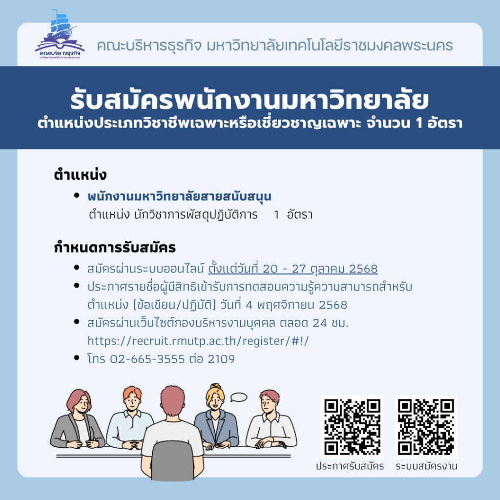 📢 คณะบริหารธุรกิจ มหาวิทยาลัยเทคโนโลยีราชมงคลพระนคร เปิดรับสมัคร ลูกจ้างชั่วคราว […]