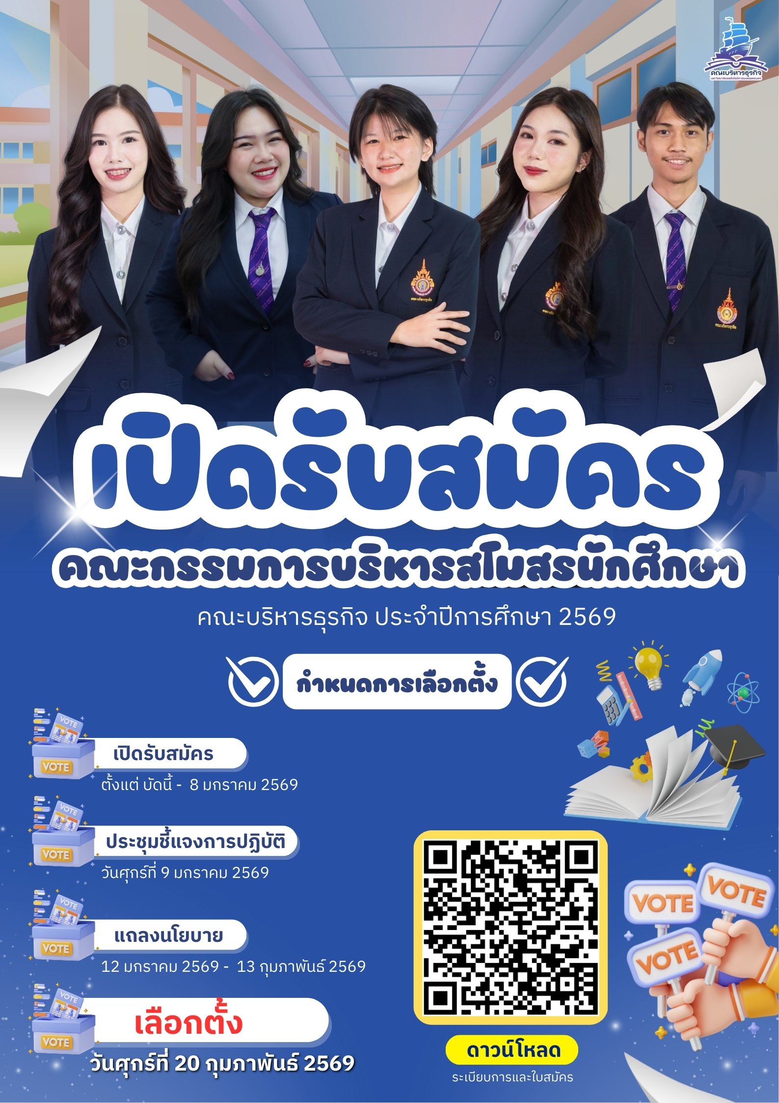 📣 ฝ่ายกิจการนักศึกษา เปิดรับสมัครคณะกรรมการบริหารสโมสรนักศึกษา คณะบริหารธุรกิจ ประจำปีการศึกษา 2569 📣